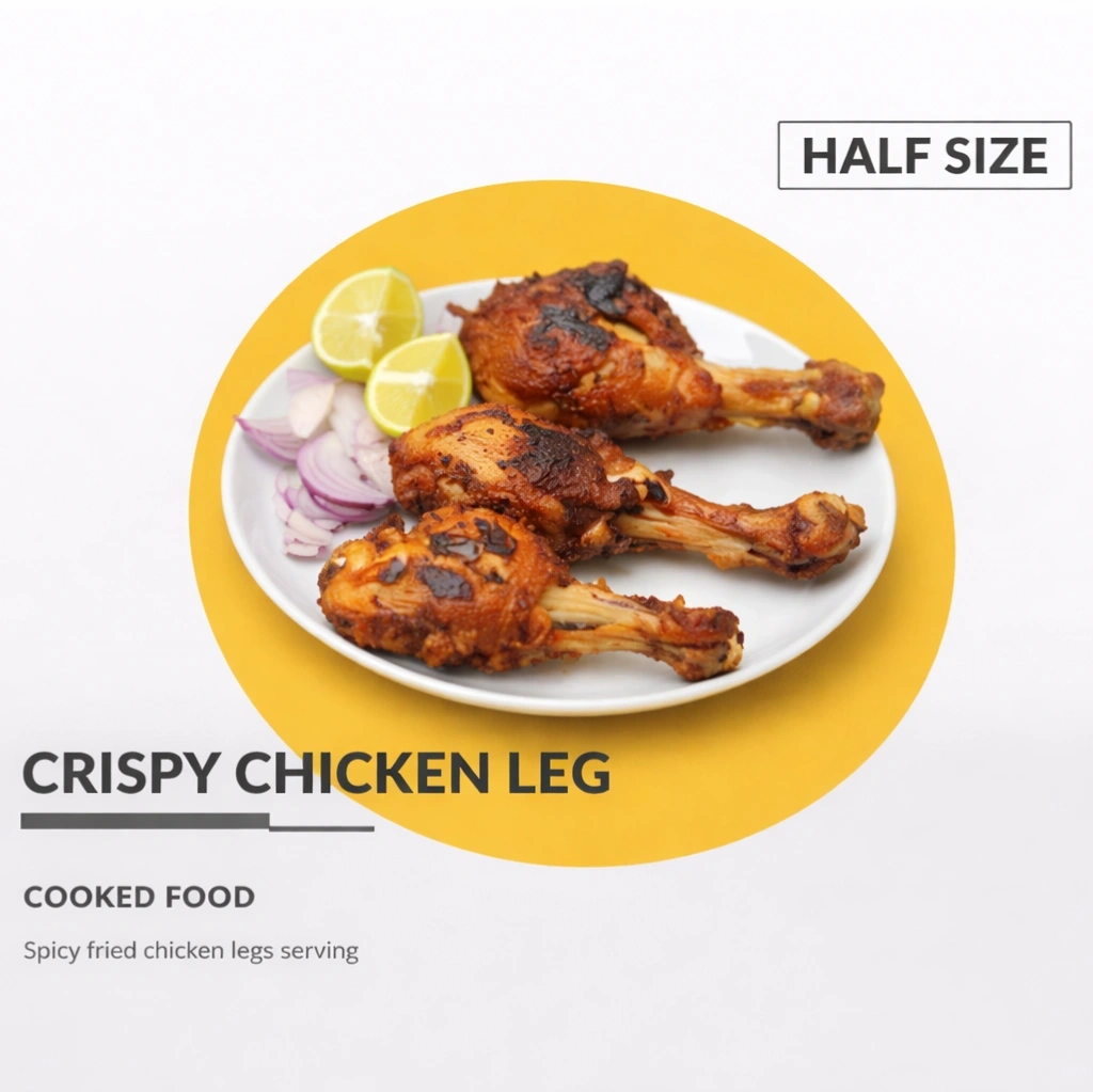 A juicy, tender chicken leg marinated with aromatic spices and cooked to perfection. Served hot with rich flavour, crispy on the outside and soft inside, making every bite delicious.