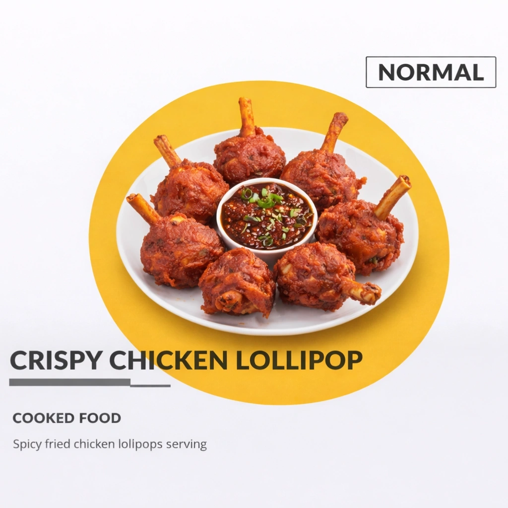 Crispy, Juicy chicken wings shaped into a lollypop style, marinated with flavored spices and deep-fried to golden perfection.