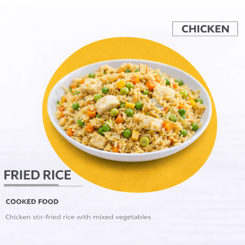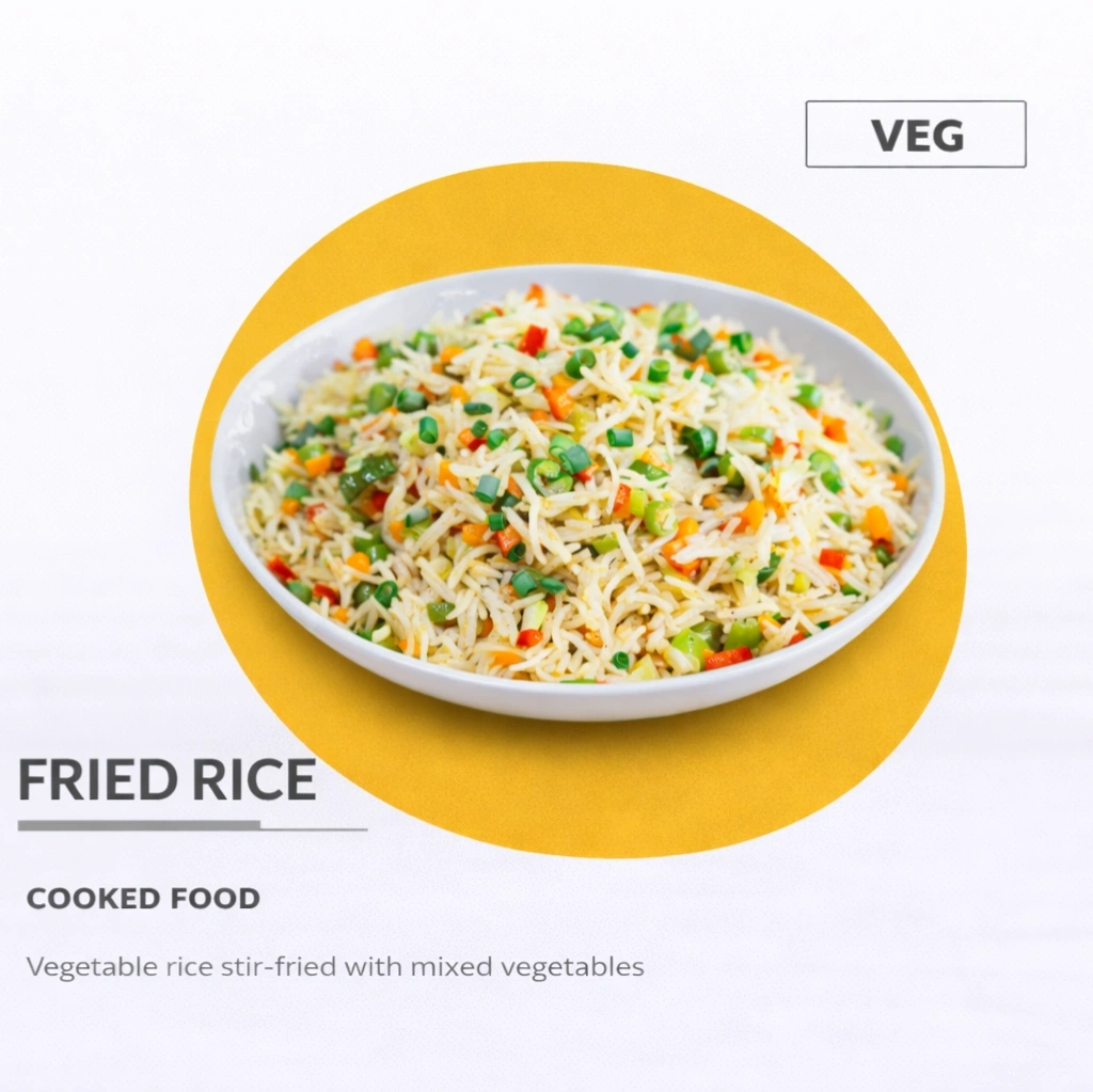 Fried rice, freshly cooked rice stir-fried with flavorful sauces, crunchy vegetables and aromatic seasonings for a rich and satisfying taste.