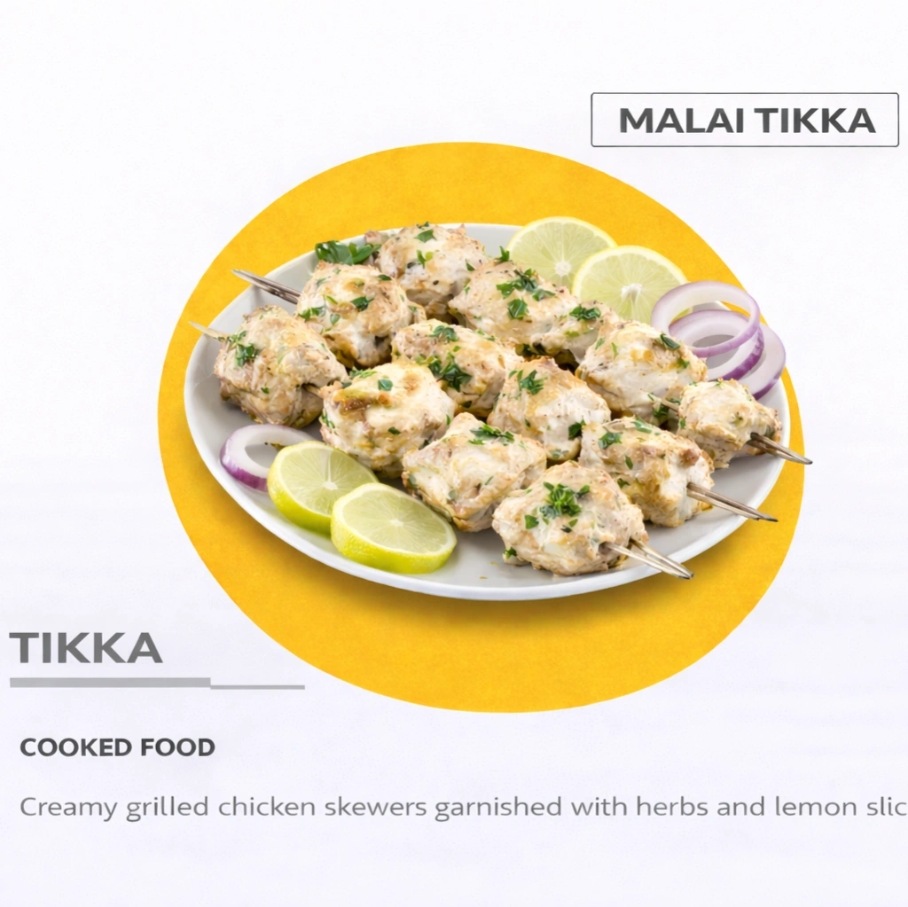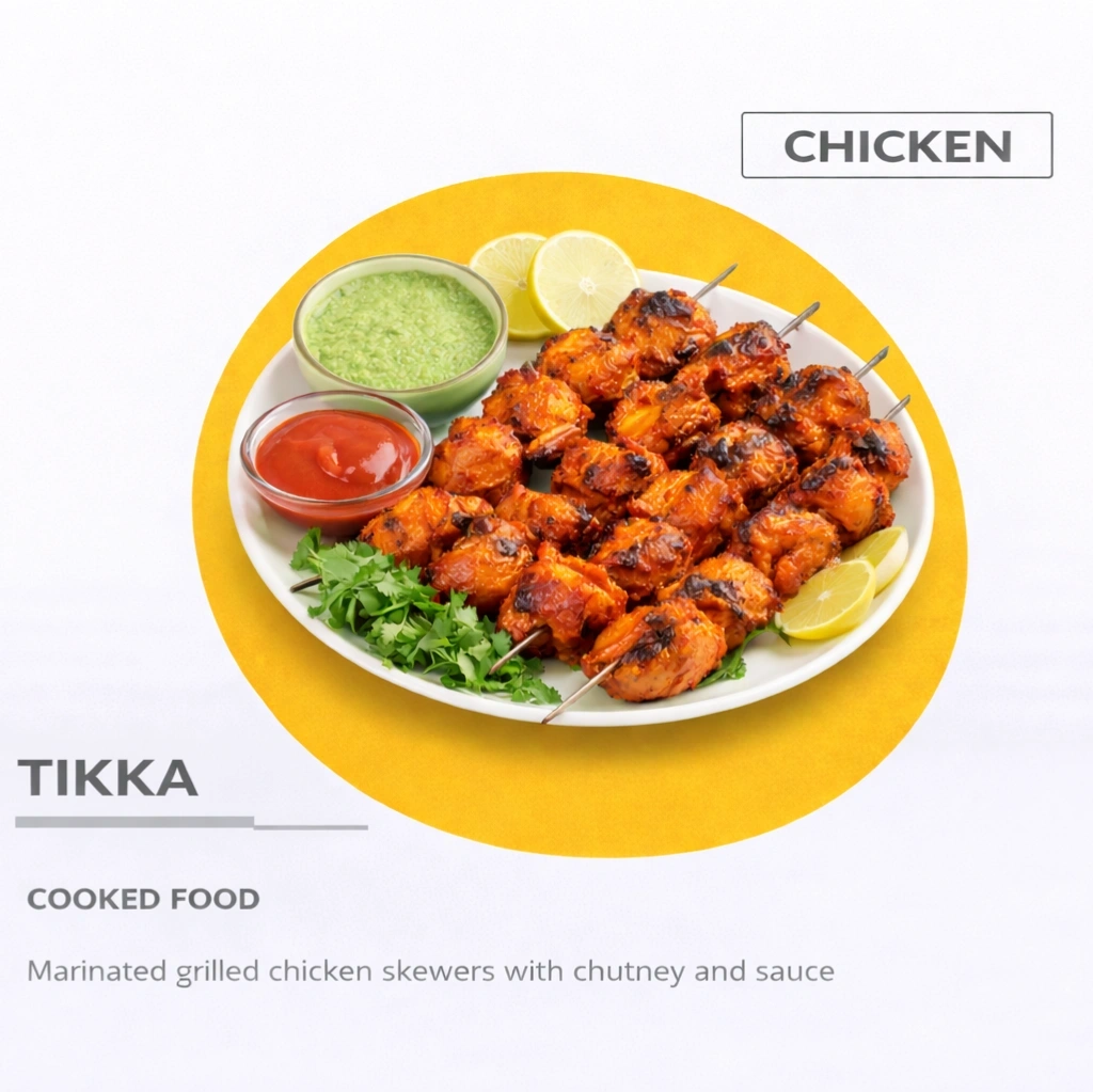 Tender pieces of chicken marinated in rich spices, yogut and aromatic herbs.